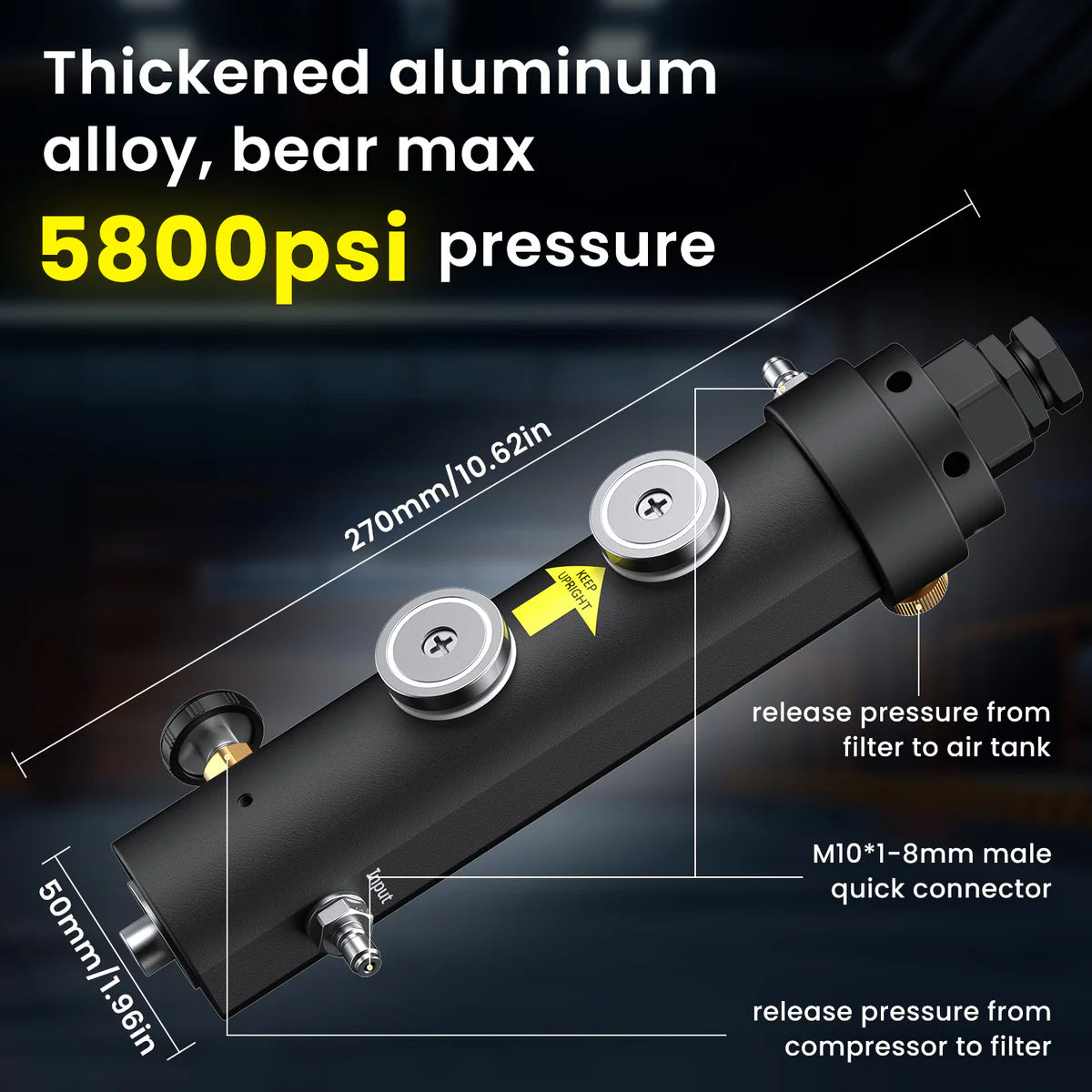 • Heavy-Duty Aluminum Construction: Crafted from seamless aerospace-grade aluminum alloy with 10mm thickened walls (9.68mm actual), this industrial-strength filter withstands 5000+ PSI pressure while featuring anti-slip texture for secure grip and scratch resistance.